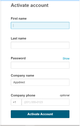 To activate the account:- Click the Activate Account link in the email, the following form opens: