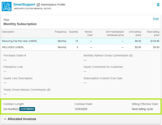 Previously to view these dates you had to click the Edit Product Details button for each product. With this update, you can now see the required date information on the read-only card of the product on the quote page provided the dates are applied and updated.
