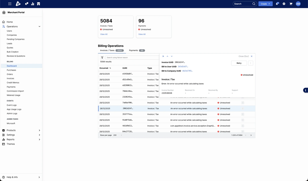 With this release, AppDirect introduces a new dashboard for Billing Operations. This dashboard is a strategic tool designed to transform billing management from a reactive manual process into a proactive, automated workflow.
